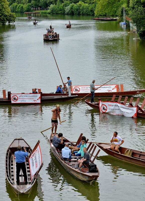 Die Gegner der Innenstadtstrecke protestierten auch auf Stocherkähnen. Weil sie erfolgreich waren, will die Unistadt jetzt weniger zahlen. ARCHIVFOTO: NIETHAMMER