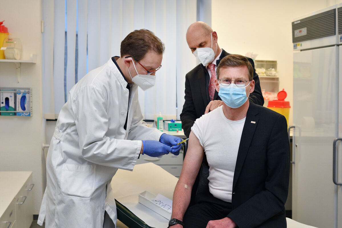 »Völlig freiwillig« hat Uni-Kanzler Andreas Rothfuß mitgemacht. »Ich möchte auch andere motivieren, sich impfen zu lassen. Sonst kommen wir ja nicht weiter«, erklärte er im Anschluss. Wie bei einer Studie üblich wurde Rothfuß vor der Impfung untersucht. Danach musste er noch eine halbe Stunde zur Beobachtung im Institut in der Wilhelmstraße bleiben. Probleme verspürte er nach dem Pieks mit der Nadel nicht: »Mir geht’s gut«, versicherte er später, als er wieder an seinem Arbeitsplatz war. »Aber ich weiß ja auch nicht, ob ich den Wirkstoff oder das Placebo erhalten habe.«