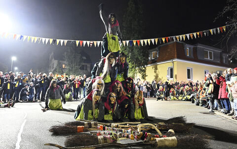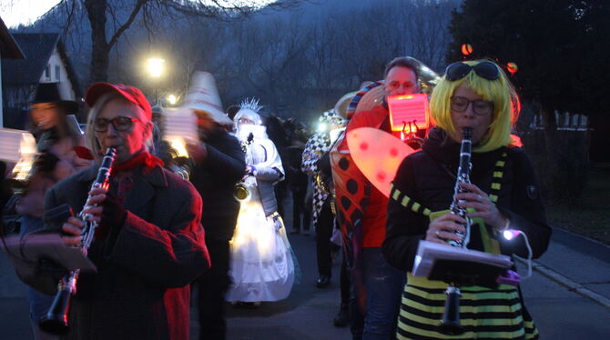 Der Musikverein Talheim, mit Elfi Eissler (links) und Bettina Neipp vornweg, führte den Umzug an.