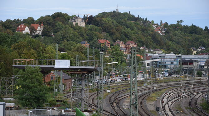 TÜBINGEN. Ein einsames Brückenstück steht über den Gleisen zwischen dem westlichen Ende des Anlagenparks und der Wilhelm-Keil-Straße. Der erste Abschnitt der neuen Fahrradbrücke West wurde in den Nächten zwischen Dienstag und Donnerstag vergangener Woche eingesetzt.