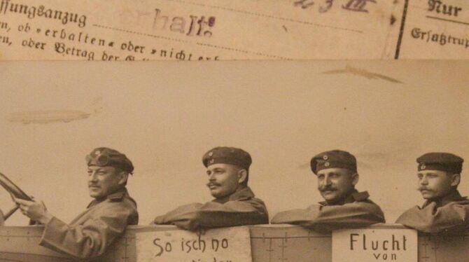 Solche Postkarten waren durchaus üblich, um den Abschluss der Militärausbildung zu feiern. Karl Röcker (rechts) wurde in Münsingen ausgebildet. FOTO: PRIVAT