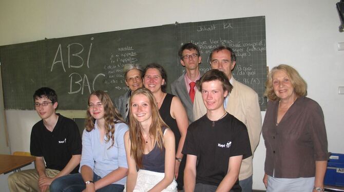 Schüler, Lehrer und Prüfer freuen sich: Die vier haben ihr Abi-Bac in der Tasche und mit Auszeichnung bestanden.