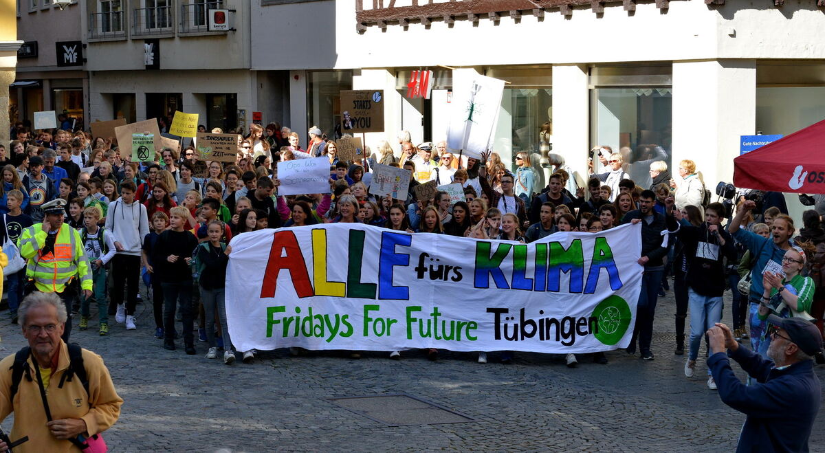 TÜBINGEN. Die Plakate waren so bunt wie die Zusammensetzung der Demonstranten. Von »Oma, was ist ein Schneemann?« über »Das war’s mit Lars« und »Es gibt keinen Plan(et) B« bis hin zu »Kohle ist 19. Jahrhundert« war auf den sehr kreativen, selbst gebastelten Schildern zu lesen. Was diesen Freitag von anderen unterschied: »Wir haben diesmal aktiv alle Generationen aufgefordert, mitzumachen«, sagt Thomas Klisch von der Tübinger Ortsgruppe »Fridays for Future«. »Wir haben Vereine, die Stadt und Unternehmen angeschrieben, um ein Netzwerk zu bilden, das gemeinsam für den Klimaschutz kämpft.« Und das weltweit. In Australien seien 300 000 Menschen auf die Straße gegangen, hat Klisch erfahren. Neben Rednern von »Fridays for Future« kam bei der Abschlusskundgebung am Anlagensee auch ein indischer Pfarrer zu Wort. Er wisse, was eine Umweltkrise bedeute: »Unter den zehn schmutzigsten Städten der Welt befinden sich zehn in Indien«, sagte Beschi Jeyarai. Schokoladenfabrikant Moritz Ritter stellte das Solarenergie-Konzept des Familienunternehmens in Waldbuch vor.