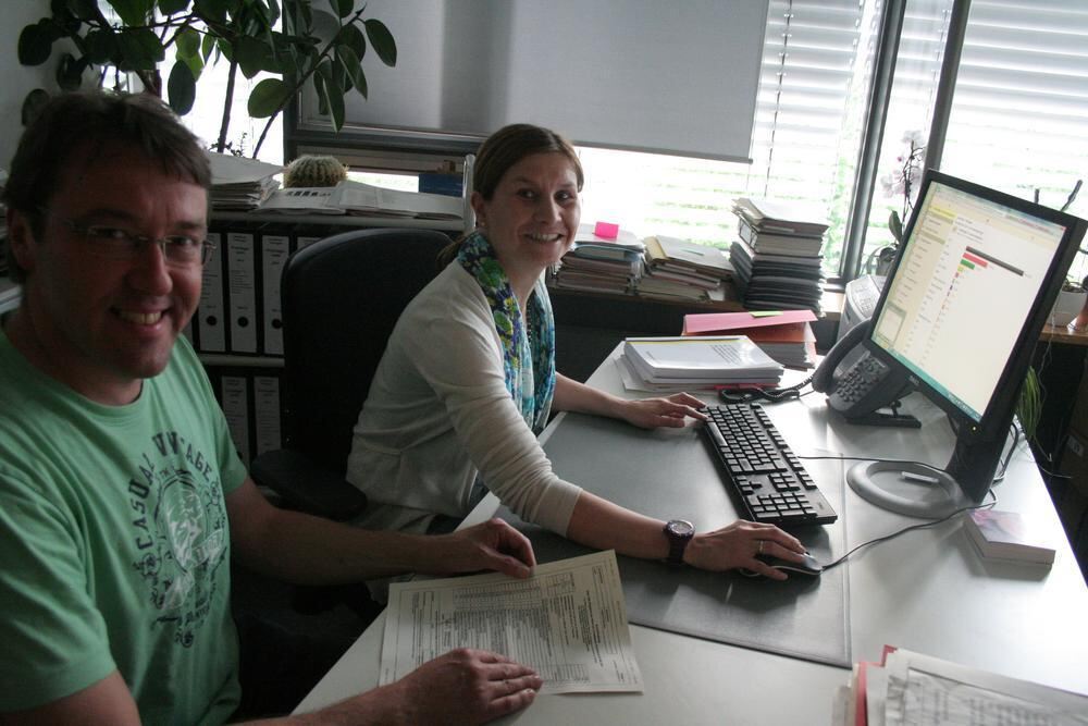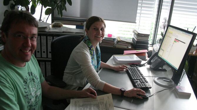 Hier laufen die Zahlen vom gesamten Landkreis ein: Michael Uhl und Gabriele Mezger vom Landratsamt Tübingen gehören zu der kleinen Truppe, die am Sonntag die Ergebnisse der Europawahl sammeltund weiterleitet.