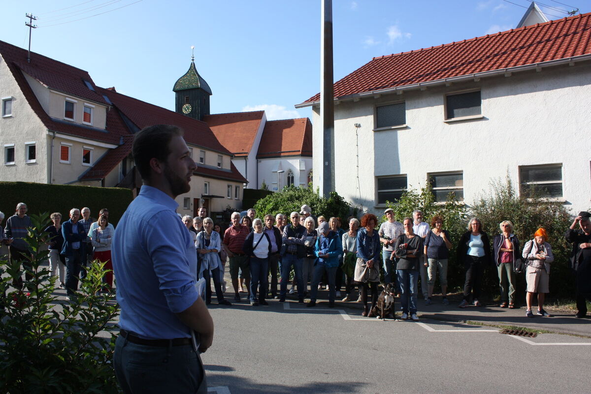 Gut 80 Menschen nahmen an der Führung zur jüdischen Kultur in Wankheim teil. Im Vordergrund: Manuel Motzer, der Kusterdinger Gemeindearchivar. FOTO: STURM