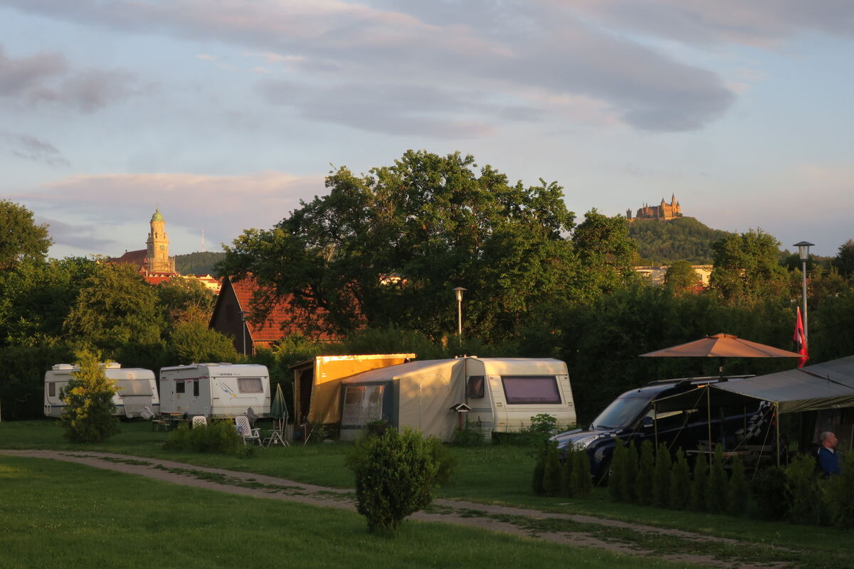 Der Zollernalbcamping in Hechingen eröffnet einen tollen Blick auf die Burg Hohenzollern. FOTOS: MERKLE