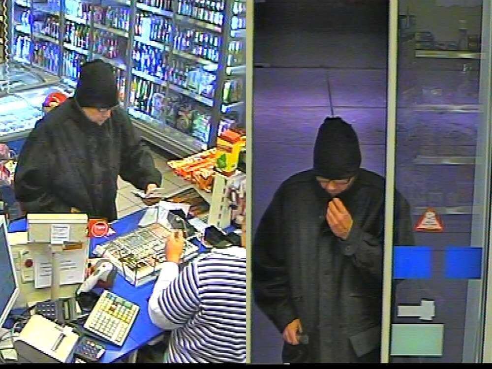 Mit diesen Fotos aus der Überwachungskamera fahndet die Polizei nach dem Gomaringer Tankstellenräuber.