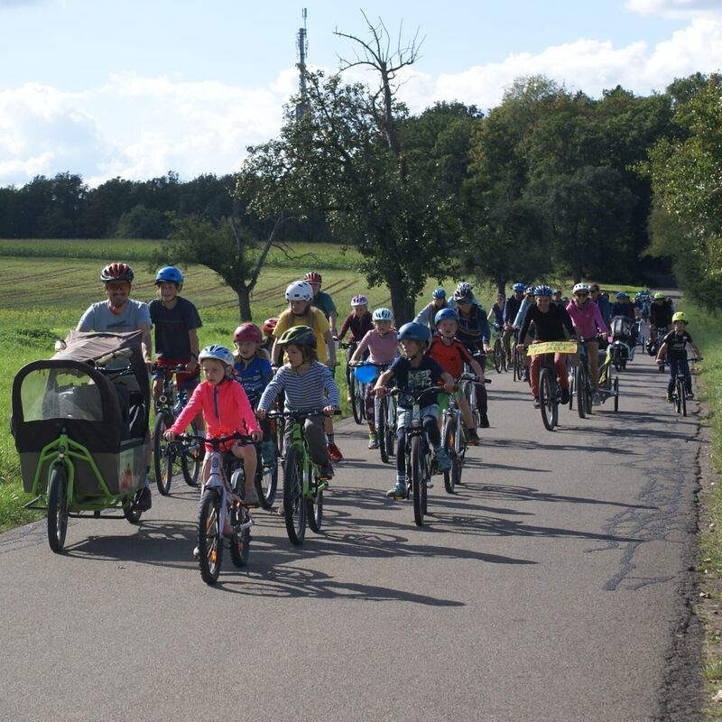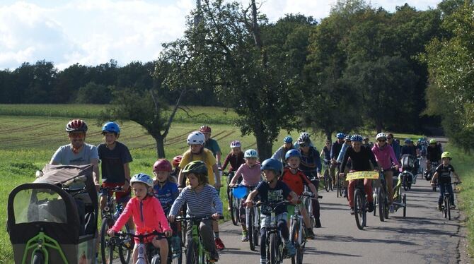 KUSTERDINGEN-IMMENHAUSEN. »Fahrradfahren verbindet« war das Motto der diesjährigen Fahrraddemo »Kidical Mass«. Etwa 50 Kinder und Erwachsene trafen sich in diesem Jahr bei bestem Wetter in Immenhausen, um zusammen über die Härten zu radeln. Fahrradfahren verbindet – aber die einzelnen Ortsteile der Gemeinde Kusterdingen sind unterschiedlich gut mit Radwegen verbunden – erläuterte Martin Glora gleich bei der Begrüßung.