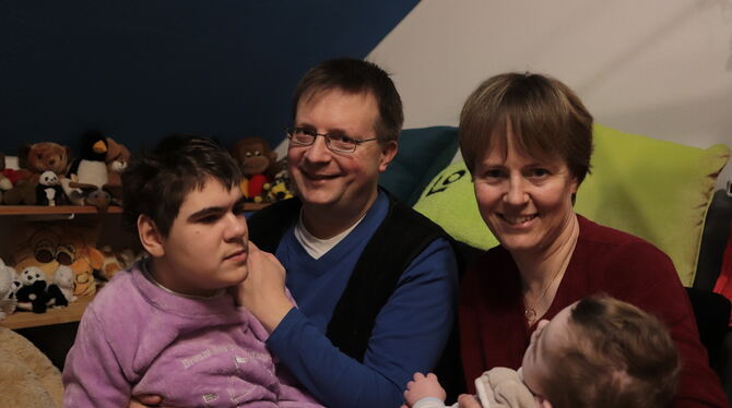 Gemeinsam glücklich: Gerhard und Ursula Schindler mit ihren beiden derzeitigen Pflegekindern. FOTO: WALDERICH
