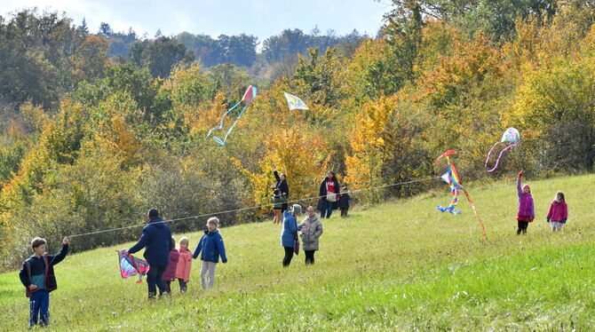 Alles ganz schön bunt hier: Auf den Wiesen unterhalb der B 27-Steige stieg am Sonntag wieder das Bästenhardter Drachenfest.