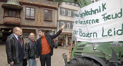 Gemeinsam gegen Gentechnik (von links): Percy Schmeiser, Christian Reutter vom Bauernverband und OB Boris Palmer.