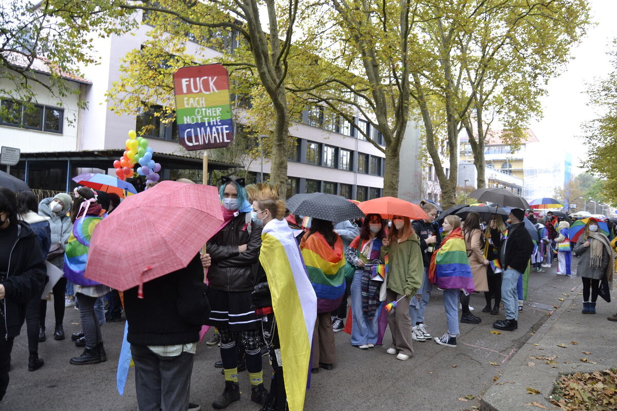 TÜBINGEN. Etwa knapp 2.000 Menschen haben am ersten Christopher Street Day (CSD) in Tübingen seit den 1990er Jahren teilgenommen. Trotz des Regens und herbstlicher Kälte versammelten sie sich am Anlagensee und zogen anschließend in einem Demonstrationszug durch die Tübinger Altstadt. Es ging über den Neckar, durch die Neckarhalde und über die Eberhardsbrücke wieder zurück zum Anlagensee.