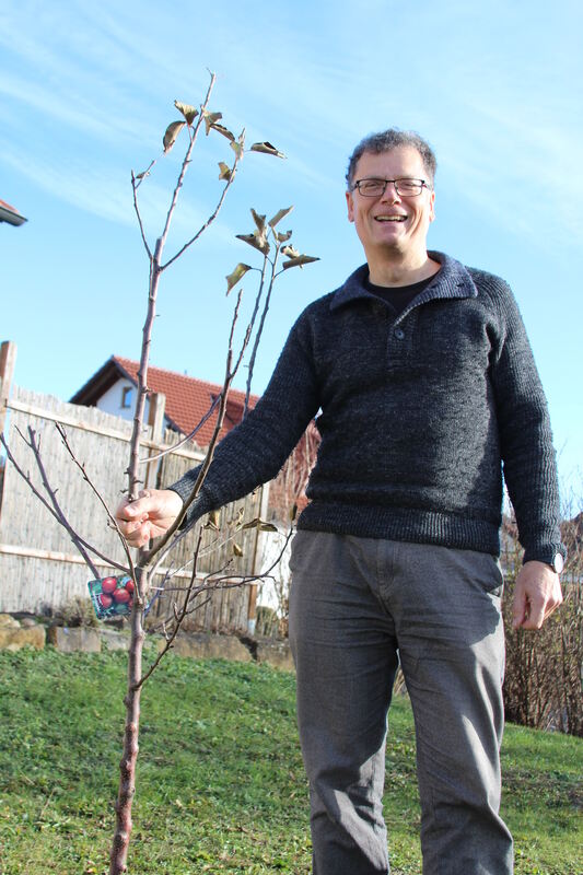 Den Apfelbaum hat Hartmut Dinkel zum Abschied von Walddorfhäslach geschenkt bekommen. Pflanzen wird er ihn in Gomaringer Erde. FOTO: WALDERICH