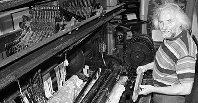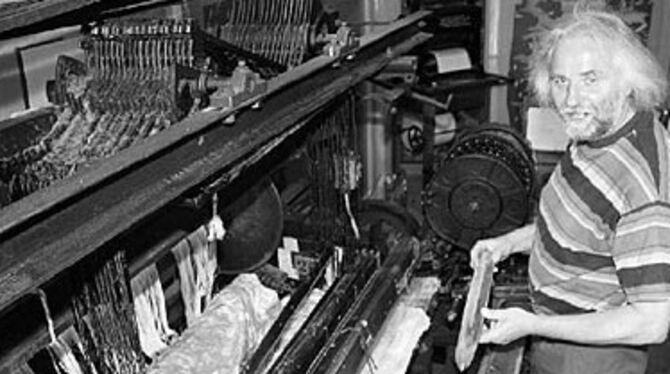 Das »Schiffchen« in der Hand: Museumsleiter Hermann Berner zeigt, wie der alte Webautomat funktionierte.