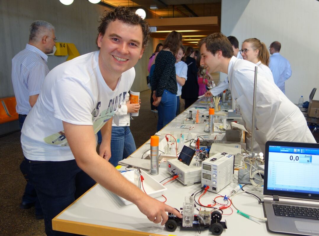 Student Matthias Moltenbrey zeigt, wie eine Brennstoffzelle funktioniert. FOTO: STRAUB