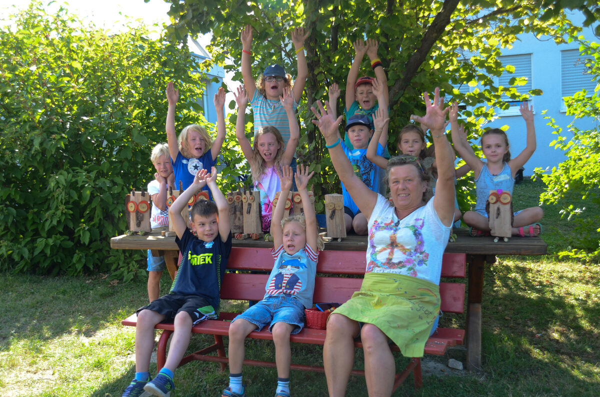 Geschafft! Nach zwei Stunden hatten die Ferienspielkinder ihre »Paulas« fertiggestellt, Mössinger Waldeulen aus Naturmaterial. FOTO: EBER