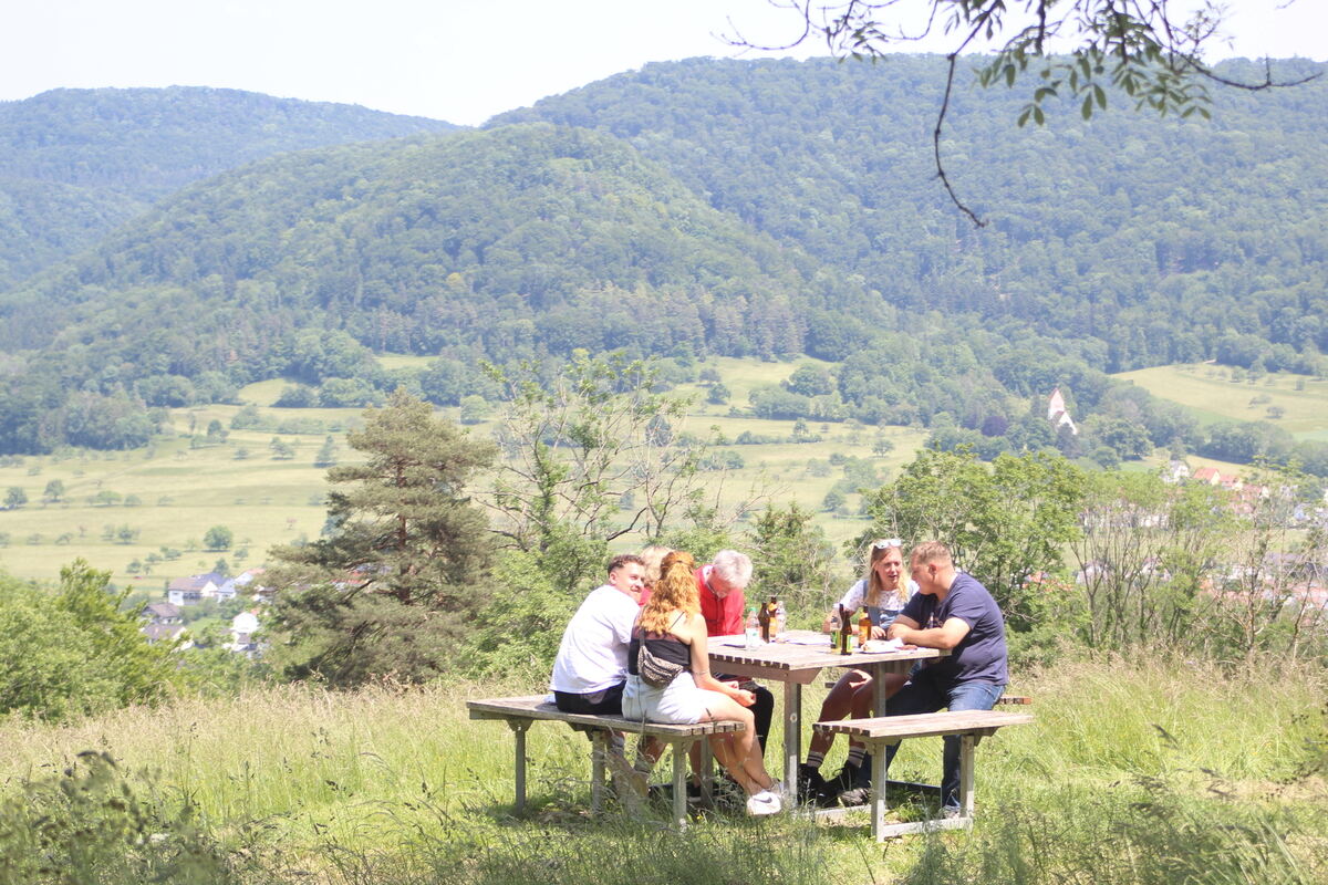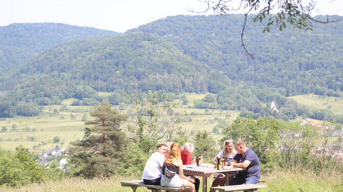 Der beste Platz beim Pfingstfest des Albvereins Talheim: Dieser freistehende Tisch mit Aussicht auf das Dorf.