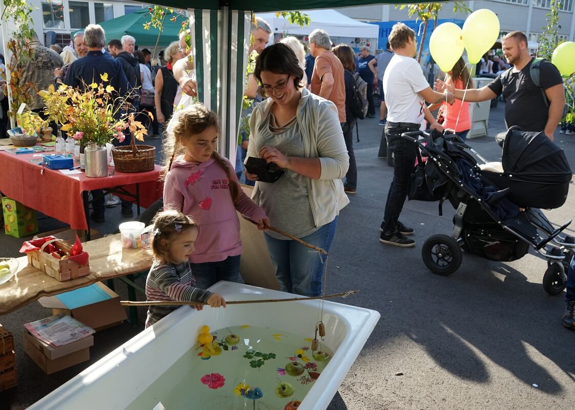 Äpfel zwischen Gummi-Enten und Blüten galt es herauszufischen.