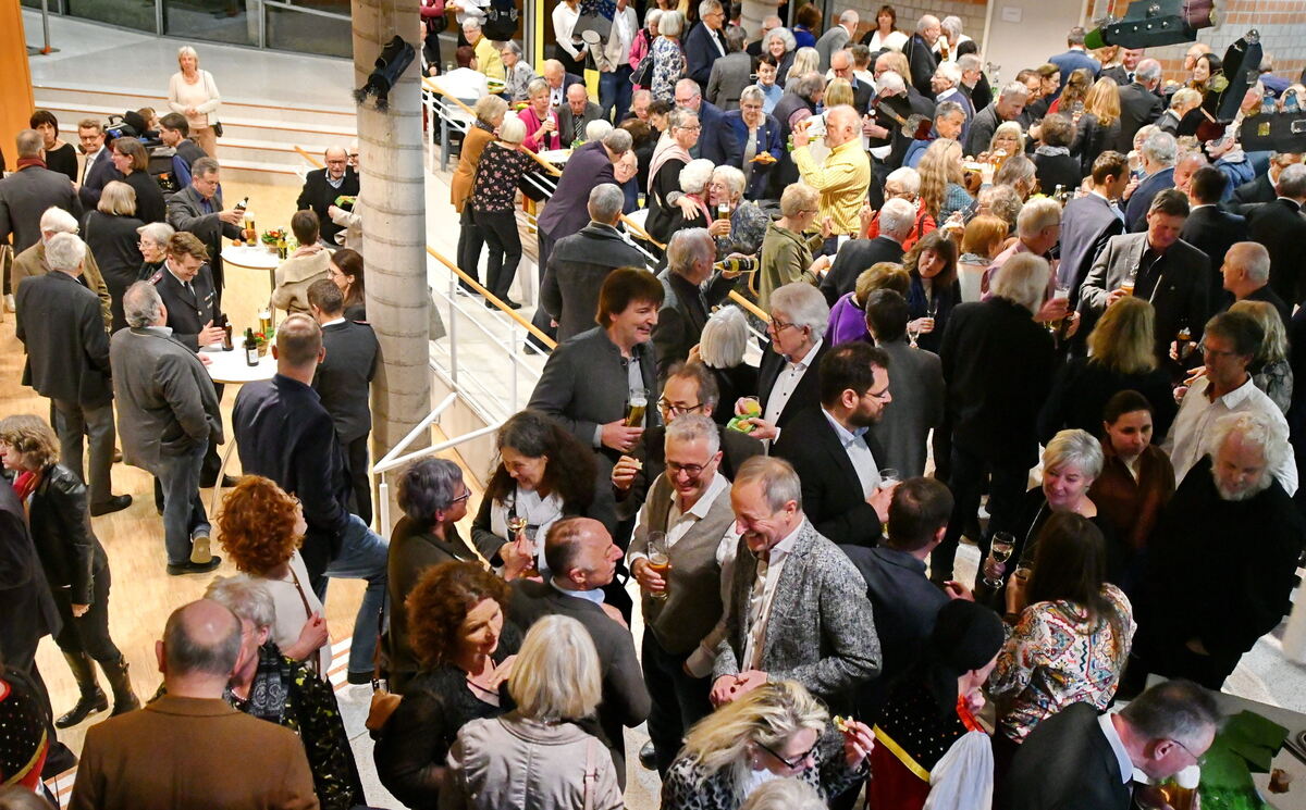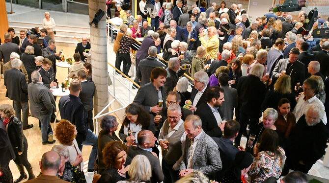 Wimmelbild: Beim Stehempfang verköstigten die Besucher des Festakts das Mössinger Jubiläumsbier. FOTO: MEYER