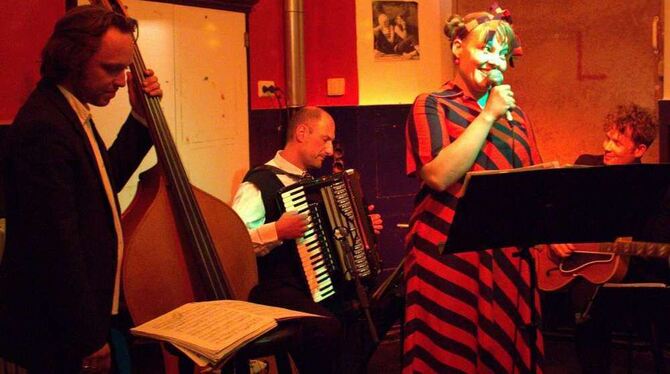 Finnischer Tango und Nordic Talking: Die Tübinger Band »Vaaralliset huulet« mit (von links) Julian Jochen-Warth, Norbert Bremes, Claudia Jochen und Harald Schwarz präsentiert ihre Musik mit einem großen Schuss Selbstironie. FOTO: PATRICK RITTER