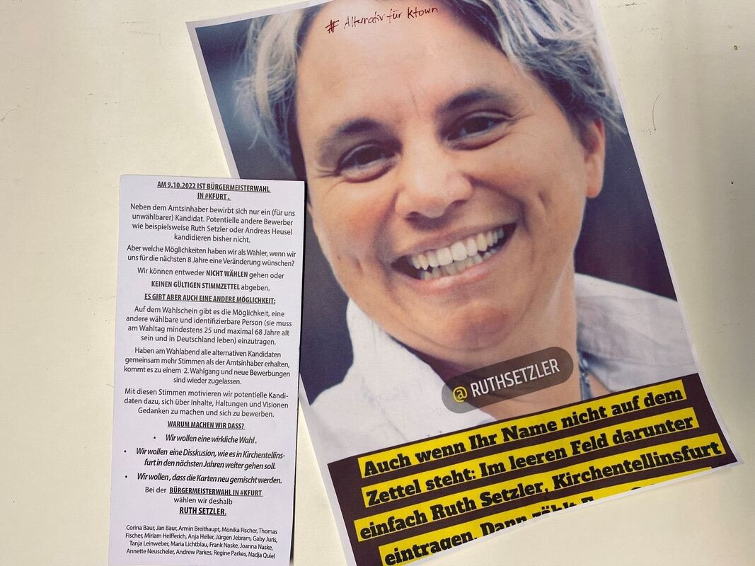Eine Initiative verteilt derzeit im Ort Flugblätter mit dem Hinweis, dass Bürger im Freifeld auch andere Namen vermerken können, hervorgehoben wird Ruth Setzler. Der Grünen-Kreisverband hat jetzt betont, dass weder die Grünen noch die Kirchentellinsfurter Gemeinderätin diese Aktion initiiert haben. Kreisgeschäftsführerin Luitgard Fink weist jedoch darauf hin: »Falls die Wählenden mit keinem der zur Verfügung stehenden Kandidaten einverstanden sind, haben sie die Möglichkeit, eine Alternative anzugeben. Dies ist besser, als gar nicht zur Wahl zu gehen.«