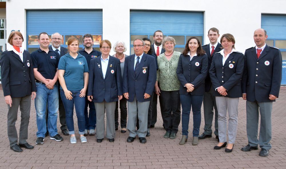 Die Führungsspitze des DRK Mössingen-Ofterdingen mit Geehrten, die zusammen 315 Jahre ehrenamtliche Dienste leisteten. GEA-FOTO: MEYER