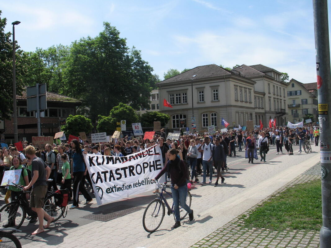 TÜBINGEN. In mehreren Großstädten von Baden-Württemberg waren ähnliche Aktionen angekündigt. Unmittelbar vor der Europawahl wollten die zumeist jungen Teilnehmer darauf aufmerksam machen, dass sie von der Politik einen Kurswechsel erwarten.