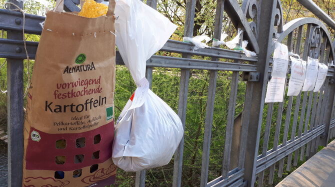 Der Gabenzaun an einer Brücke über die Steinlach in Tübingen ist gefragt. FOTOS: STÖHR
