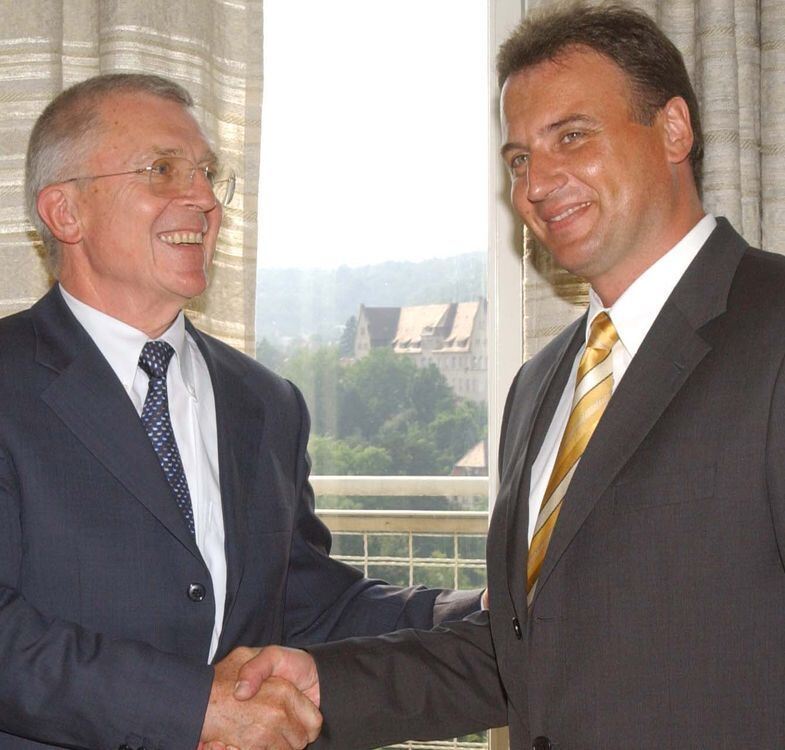 Joachim Walter nach der Wahl mit seinem Vorgänger Albrecht Kroymann. FOTO: NIETHAMMER
