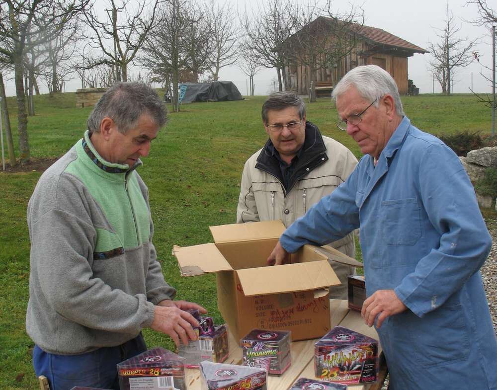 Gestern schon bei den Vorbereitungen für die Silvester-Feier(von links): Fachwart Kurt Renz, der Vorsitzende Herbert Schweiker und Hans-Otto Futter im Lehrgarten.