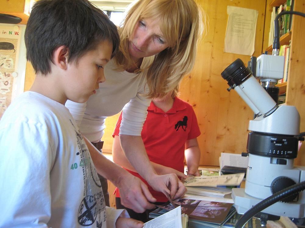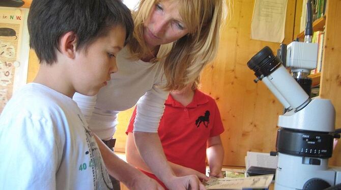 Typisch Tübinger Ökomobil: Sabine Reußink, Mitte, begeistert Kinder und Jugendliche fürs Wissenwollen, Mitdenken und Mitmachen in Sachen Natur und Umwelt.