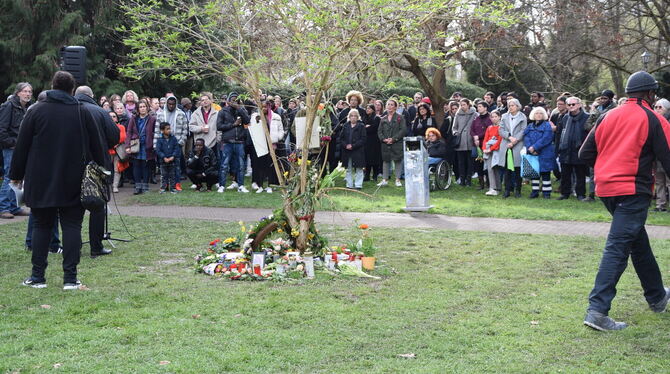 TÜBINGEN. Die Trauer soll an diesem Tag im Vordergrund stehen. Das war der erklärte Wunsch von Ruben Malina, Streetworker im Asylzentrum Tübingen. Dem Aufruf zur Gedenkfeier am Tatort hatten sich die Vereine Adis, Acli, Move on, die AG Gambia, der Ak Asyl Südstadt, Black Vision und Voices angeschlossen. Gefolgt sind ihm gestern Abend nach Schätzungen der Polizei rund 350 bis 400 Menschen.