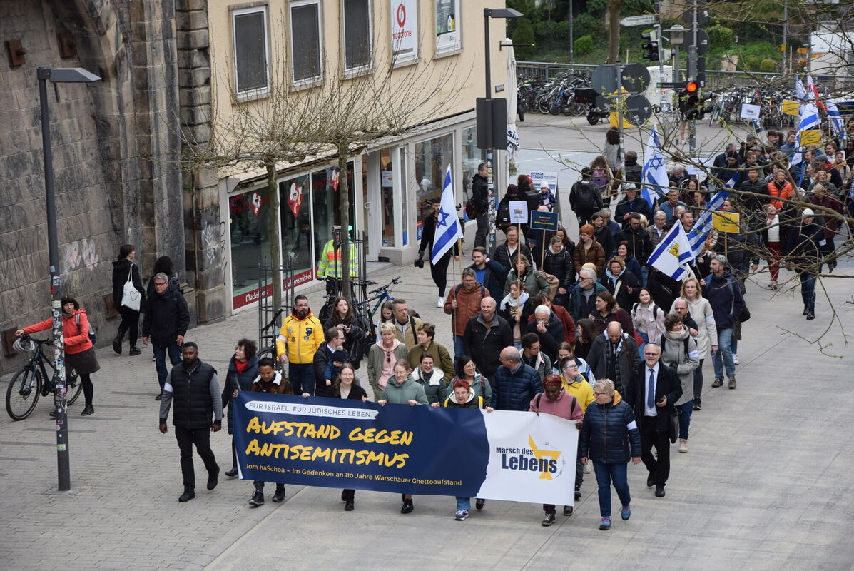 Der gestrige »Marsch des Lebens« führte durch die Tübinger Innenstadt bis zum Marktplatz. Dort gab es noch eine Abschlusskundgebung. Die Initiative mobilisiert seit 2007 in 25 Nationen und über 400 Städten Menschen, aktiv ein Zeichen gegen Antisemitismus zu setzen und Solidarität mit der jüdischen Gemeinschaft zu zeigen. Initiiert wurde der Marsch von Jobst und Charlotte Bittner von der evangelikalen Freikirche Tübinger Offensive Stadtmission (TOS) auf der Route des Todesmarsches von der Schwäbischen Alb nach Dachau. (ist)