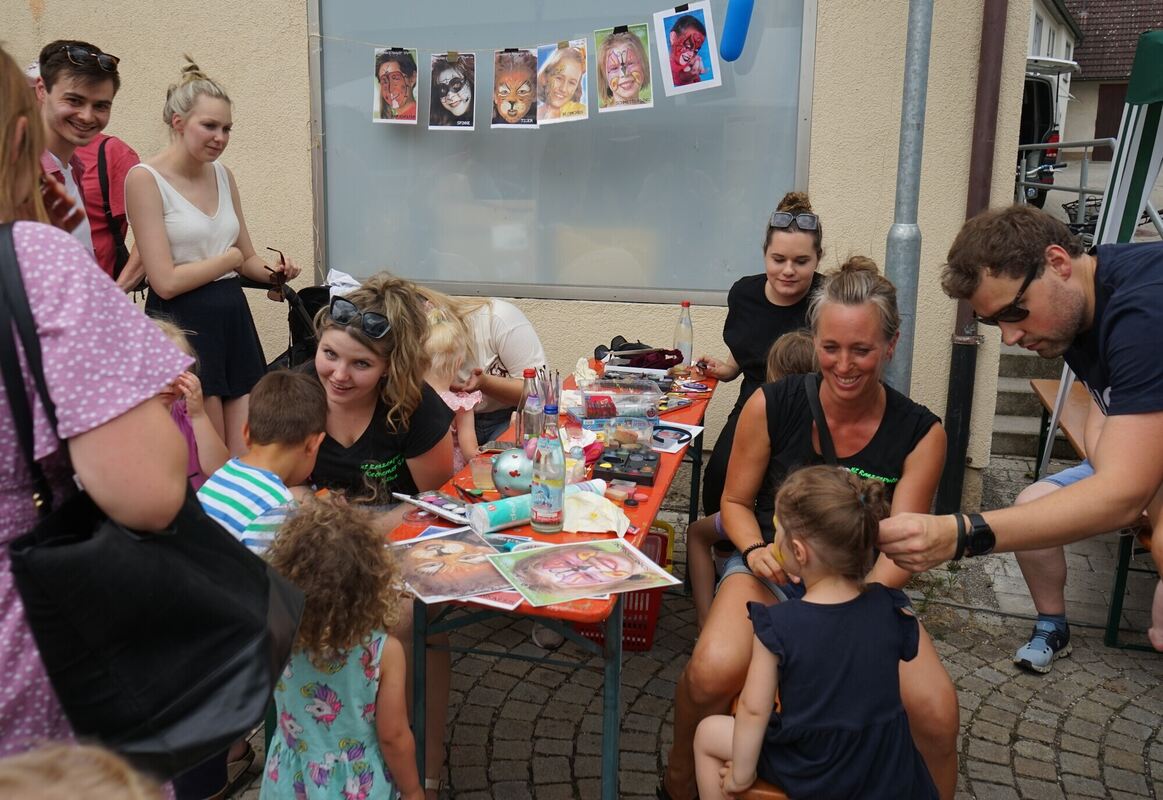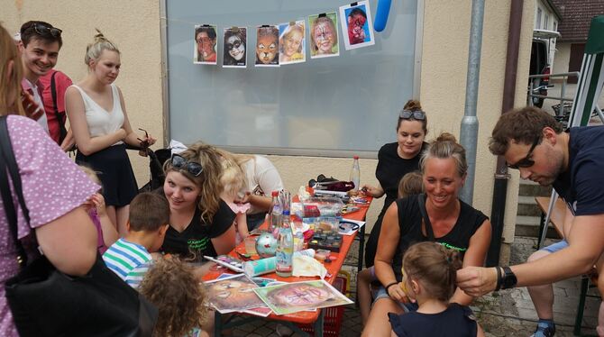 Mit Aufführungen luden diese zum Zuschauen und Mitmachen ein. So gab es auf der Wiese beim Parkplatz Lesungen für Kinder, Glücksrad und Dosenwerfen der Kindergruppe, ein Bastelangebot der Modellflieger, Kinderschminken sowie Baumstamm-Nageln mit der Narrenzunft Ranzenpuffer und ein Wurfspiel »Schiffe versenken« bei der Seglergemeinschaft am Rathaus. Gleich gegenüber servierte der Förderkreis Patenschule eritreischen Kaffee und Selbstgebackenes. Vor dem Stand der Kindergruppe mit Popcorn und Zuckerwatte bildete sich eine Warteschlange. Von mediterranen Vorspeisentellern am Stand der GAL bis zu Klassikern wie Currywurst, Steak-Weckle, Hotdogs und Käsespätzle gab es eine große Auswahl an Essen. Die Feuerwehr lockte mit ihrer Blaulichtbar und kleinen Zelten davor die Besucher. Mit Straßenmusik wie bei der Fasnet sorgten die Guggenmusiker der Narrenzunft Ranzenpuffer für Stimmung. Sportlich konnten sich die Gäste beim Basketball und einer Rallye durchs Dorf beteiligen. Die Aktivitäten erstreckten sich vom Parkplatz bei der Kindertagesstätte Regenbogen. (GEA)