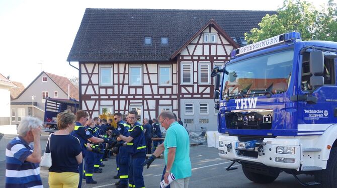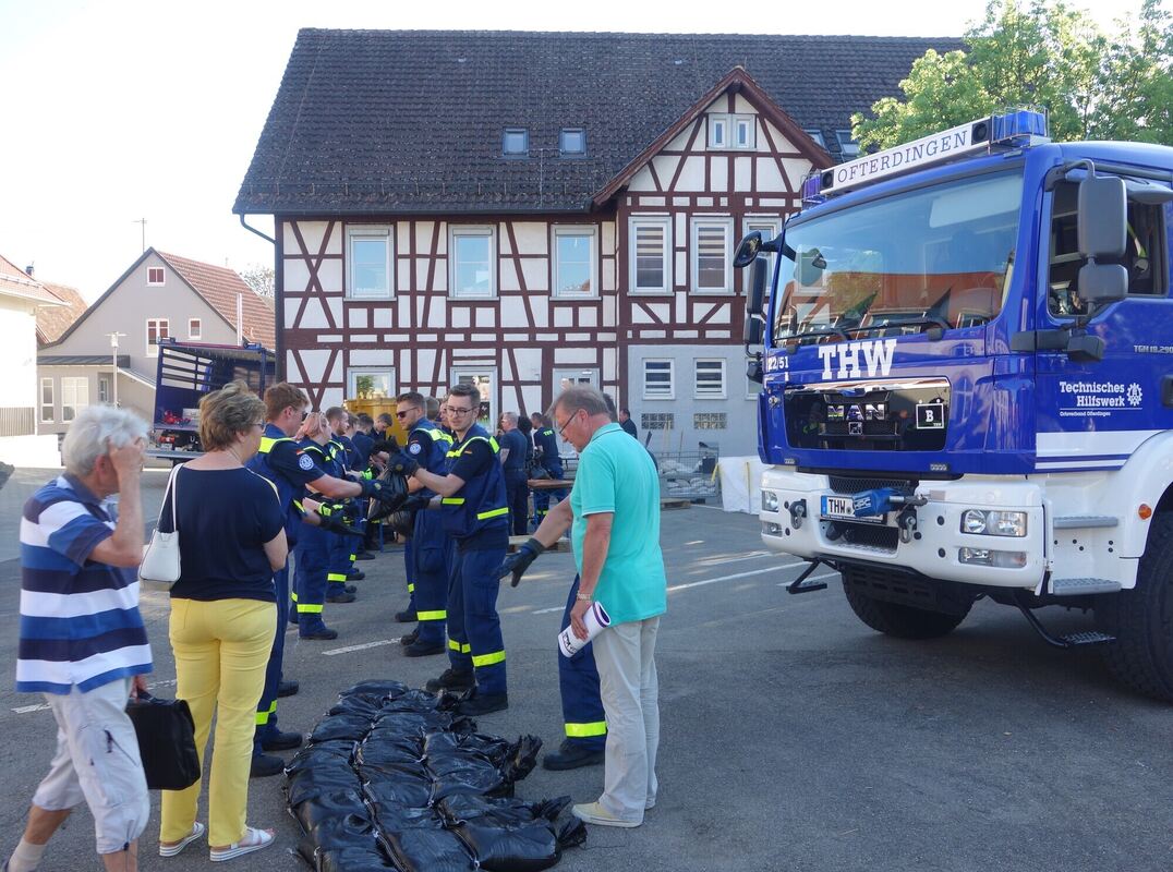Praktische Vorführung: Das THW zeigte, wie Sandsäcke bei Hochwasseralarm gefüllt werden.