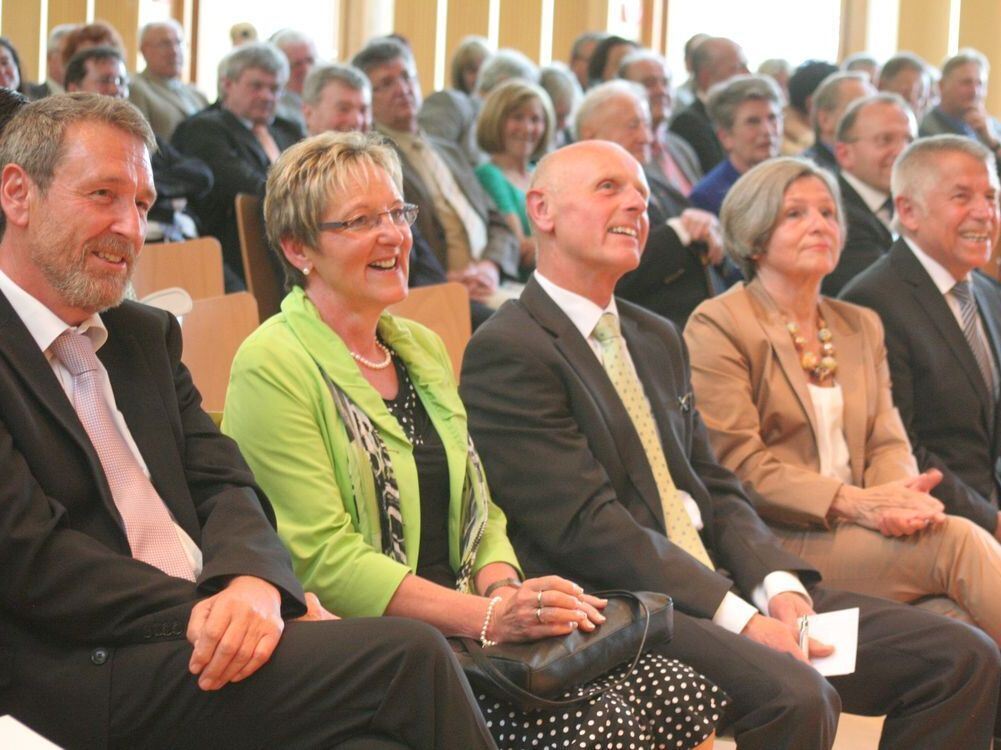Mit gelöster Stimmung in den Ruhestand: Karl Werner Speidel, Doris und Gottlob Heller, Erika und Hans Müller.