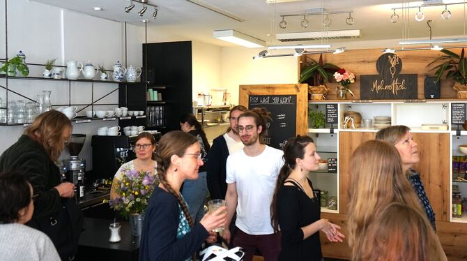 Die ersten Kunden stehen Schlange im Café Mehrrettich. FOTO: STRAUB