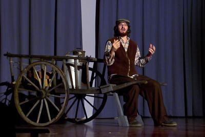 Ephraim Knobloch als Milchmann Tevje im Musical »Anatevka«, das das Firstwald-Gymnasium auf die Bühne bringt.