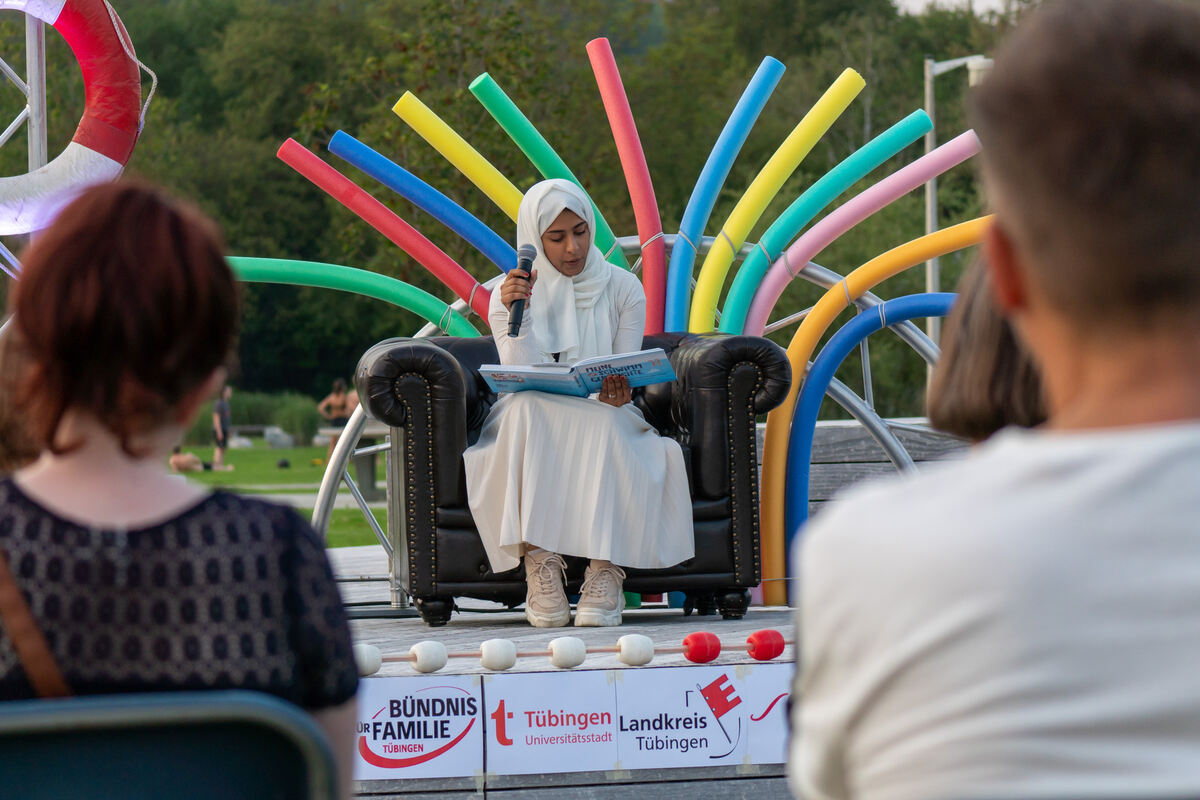 TÜBINGEN. Rund hundert Besucherinnen und Besucher aus unterschiedlichen Kulturen lauschten im Tübinger Freibad berührenden und spannenden Erfahrungen vom Schwimmen. Die Geschichten reichten von dem brennenden Wunsch, seit der Kindheit schwimmen zu lernen, bis hin zu Geschichten, in denen Schwimmen ein entscheidender Faktor für das Überleben war. Die gelesenen Erfahrungen stammen aus dem Buch "Meine Schwimmgeschichte", herausgegeben von Dagmar Müller und der Tübinger Initiative "Schwimmen für alle Kinder", die den Leseabend mit anschließender Podiumsdiskussion organisiert hatten. Schwimmen kann nicht nur Leben retten, es habe auch eine wichtige soziale Funktion, betonte Müller: "Wir haben beobachtet, dass die Freundschaften unter verschiedenen Kulturen auch nach den Schwimmkursen unserer Initiative bestehen bleiben. Nach einer Umfrage des DLRG lernen immer weniger Kinder, sich im Wasser sicher zu bewegen. Das will die Initiative ändern. (eb)