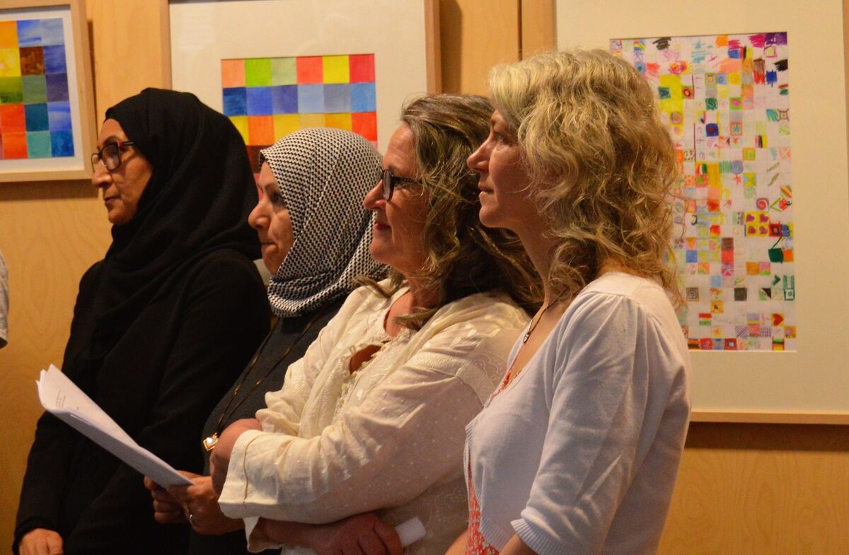 Bei der Eröffnung der Gemeinschaftsausstellung im Dußlinger Rathaus übernahm Brigitte Obermeier (dritte von links ) die Einführung. FOTO: VEY