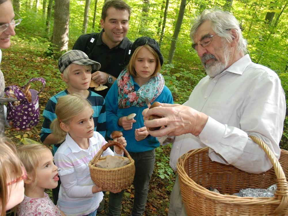 Nur die Guten kommen wieder zurück ins Körbchen: Beim Spaziergang im Gomaringer Wald erklärt Pilzexperte Karlheinz Baumann (rechts), was es mit den Fundstücken auf sich hat. FOTO: STEIDLE