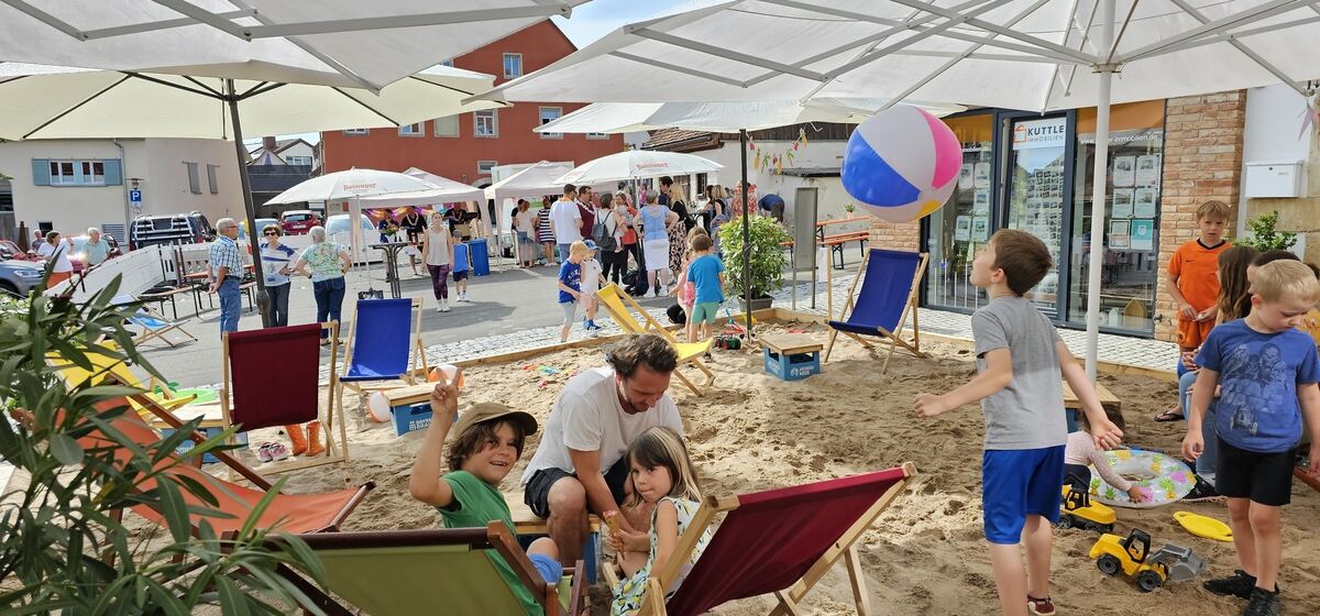 Doch zurück zum Hauptgeschehen: Der Bürgermeister freut sich nicht nur am Wetter und den vielen fröhlichen Kindern, er bedankt sich bei den Anwohnern, Organisatoren, ortsansässigen Firmen und Vereinen für das Gelingen und den Ablauf des kleinen Großereignisses im August. Die Idee, für Daheimgebliebene und auch Urlaubsrückkehrer einen kleinen Strand einzurichten, hatte Hess bereits vergangenes Jahr. Rathausmitarbeiterin Nadja Kwiatkowski war sofort »Feuer und Flamme«, wie sie lachend erklärt. »In wenigen Tagen haben wir in Windeseile alles auf die Beine gestellt«, erzählt sie strahlend.