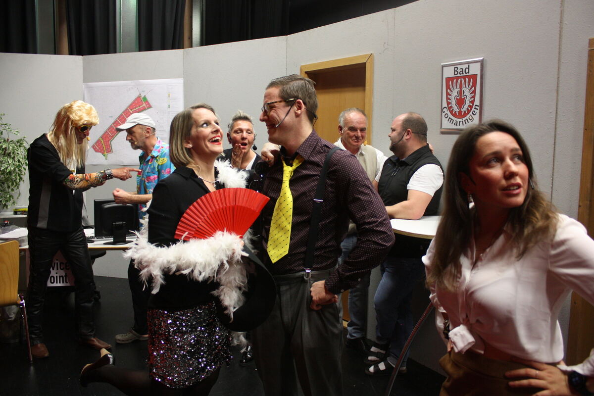 Gerd Strohmaier, Regisseur und Souffleur der TSV-Theatertruppe, gelang es, die Komödie von Bernd Spehling, die ursprünglich auf einer Hallig in der Nordsee angesiedelt war, auf Gomaringer Verhältnisse zu übertragen. Im Text waren einige Insider-Gags eingebaut, die von den Meisten in der Gomaringer Kultur- und Sporthalle mit viel Gelächter bedacht wurden. Dabei half auch das von Gottlob Knoblich entworfene Bühnenbild: An der Wand hing zum einen das neue Wappen von Bad Gomaringen. Zum anderen, zum Amüsement von Bürgermeister Steffen Heß, der in vorderster Reihe saß, eine Karte des in der Realität geplanten Wohngebiets Heckberg. Tim Strohmaier und Florian Wurster sorgten dafür, dass die Bühnentechnik, Ton und Licht, klappte.