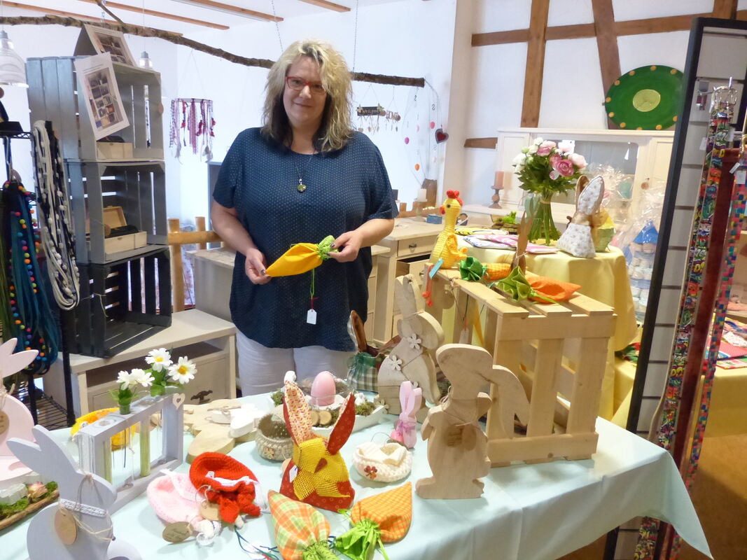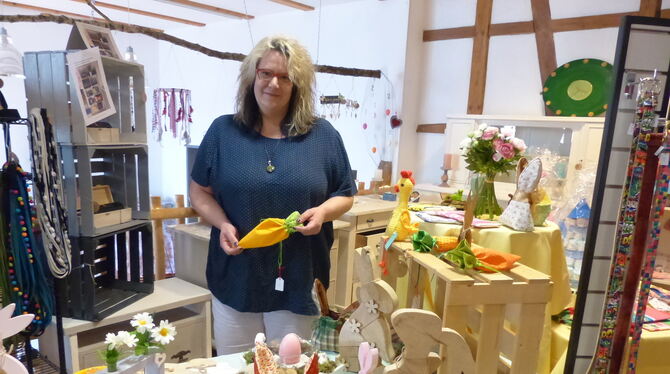 Für Ostern hatte Michaela Schmid viele Deko-Artikel in ihrem neuen Laden. Aus dem Geschäft wird nun nichts, aber dank überraschender Angebote kann sie diese nun woanders verkaufen. FOTO: WEBER