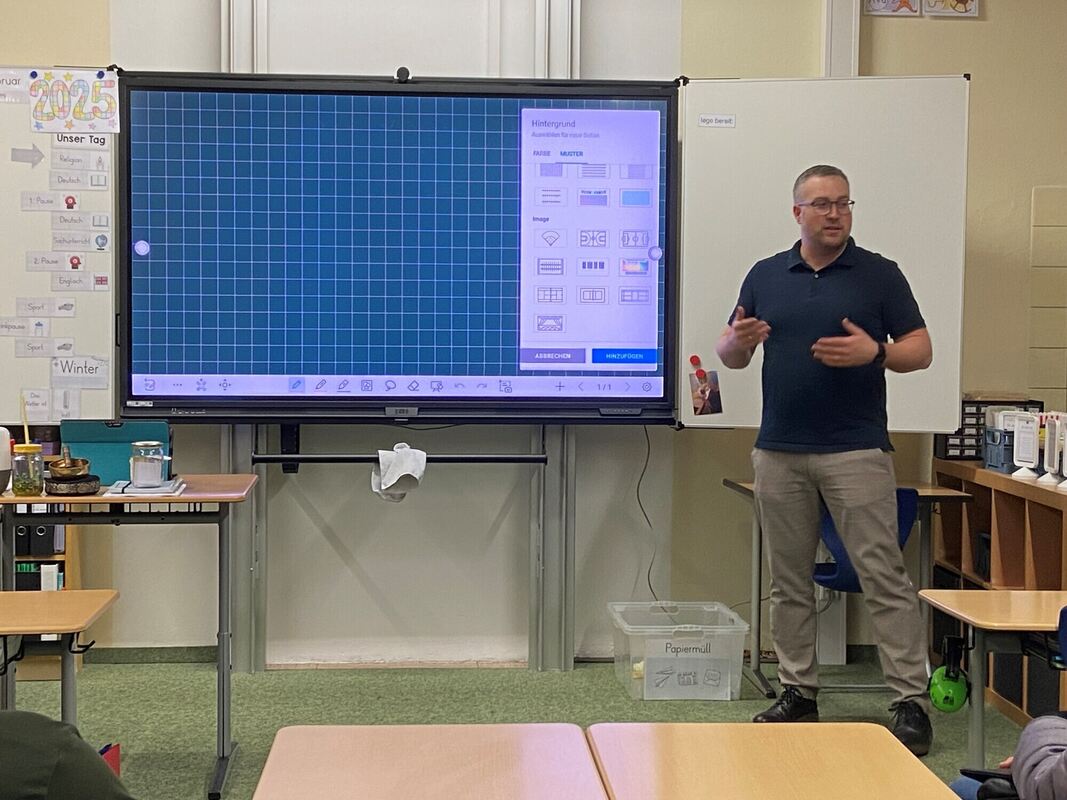 Magnus Klinzing, Rektor der Gomaringer Schlossschule, präsentierte den Gemeinderäten die neuen Displays, an denen der moderne Unterricht stattfindet.