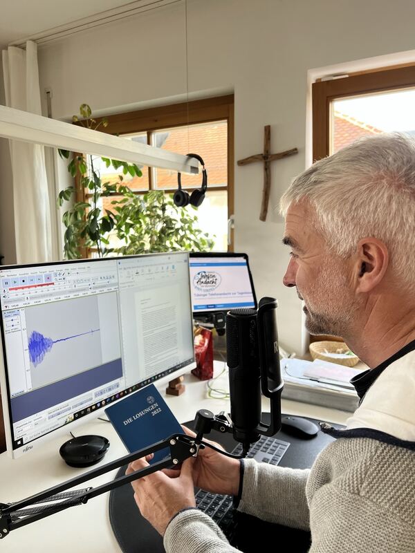 Die Zahl der Anrufenden stieg, schon nach wenigen Wochen waren es 250 am Tag. "Das geht natürlich nicht mit einem normalen Anrufbeantworter", erzählt Rostan, "man braucht dazu eine Telefon-Cloud Lösung." Da können beliebig viele gleichzeitig anrufen, ohne im Besetztzeichen zu landen. Im Sommer 2020 wurde der Kreis der Andachtssprecher um die beiden Kollegen aus Derendingen und Öschingen erweitert, so konnte der Aufwand besser verteilt werden. Mit der Zeit wurden die analogen Aufgaben in der Gemeinde wieder mehr und damit kam auch die Frage, was mit den Telefonandachten passiert. »Das kann ich doch nicht sterben lassen«, dachte Rostan beim Blick auf die nach zwei Jahren immer noch stabilen Anruferzahlen – auch ohne die Not eines Lockdowns. Der Produktionsaufwand der einzelnen Andacht ist zwar gering, die alleinige Verantwortung eines solch stetigen Angebotes sei schon sehr herausfordernd. Im größeren Team wäre es einfacher. Und so kam Rostan mit der Idee, die Telefonandacht auf den ganzen Kirchenbezirk auszuweiten.
