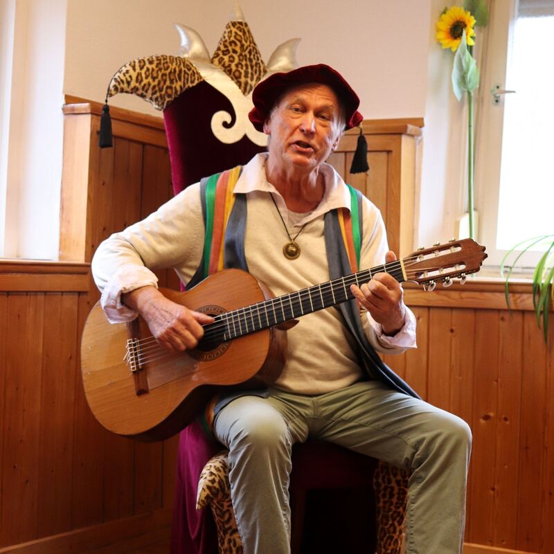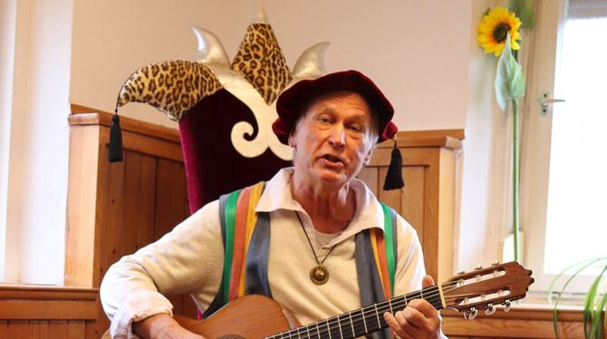 Der Sänger mit der roten Samtmütze gehörte viele Jahre zum Tübinger Stadtbild. Immer umgeben von einer großen Schar Kinder, sang er im Sitzen seine Lieder. Er wollte auf Augenhöhe mit seinem jungen Publikum sein, für dass er Teppiche zum Sitzen und Rasseln zum Mitmachen dabei hatte.