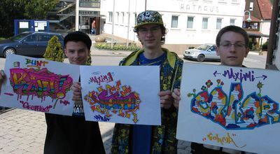Kleine Entwürfe für die große Wand: die Graffiti-Künstler Martin Labacher, Florian Nädele und Fabian Zwiehoff (von links).