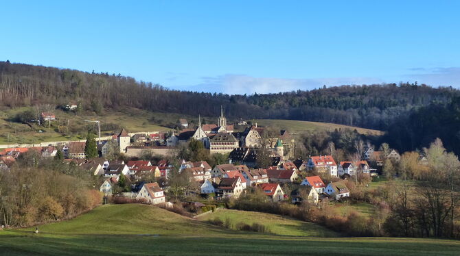 Der Tübinger Stadtteil mit der größten Ausdehnung, aber nur 326 Einwohnern: Bebenhausen vom Waldrand aus fotografiert.