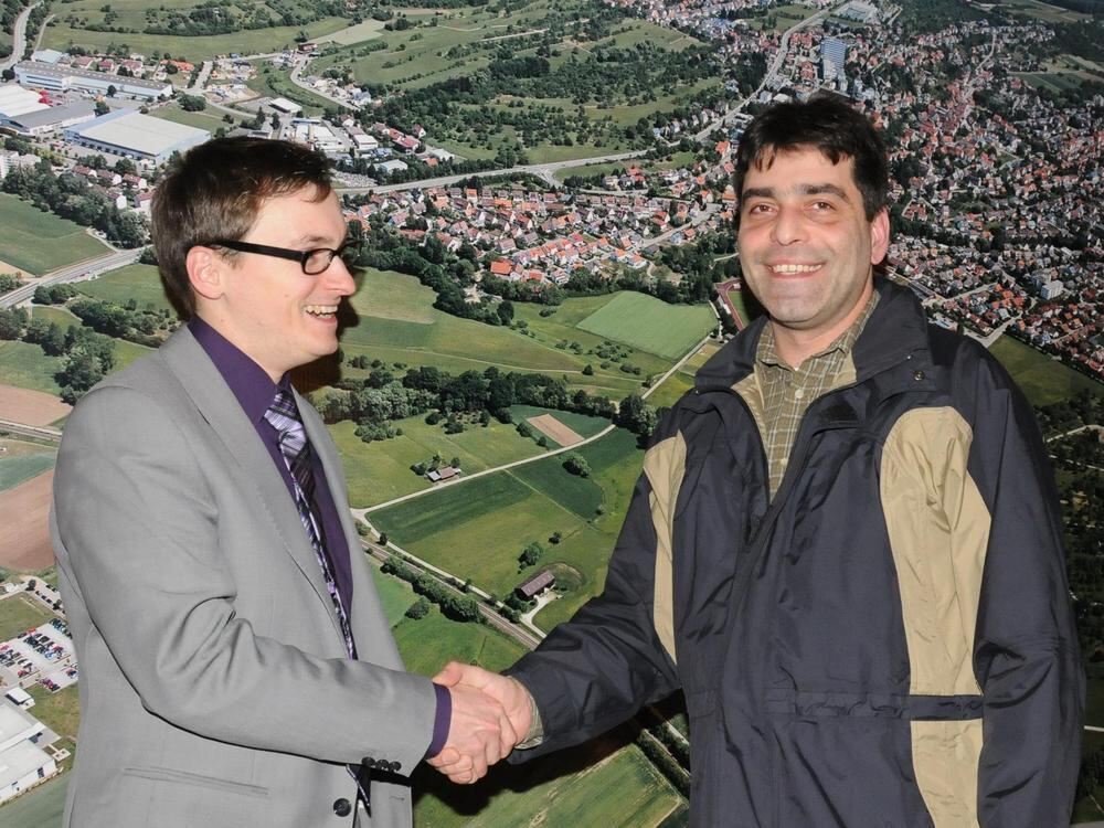 Vor einem Jahr begrüßte Gomaringens Bürgermeister Heß den neuen Vollzugsbeamten Gialamidis. Mittlerweile verteilt er in drei Gemeinden Bußgeldbescheide.